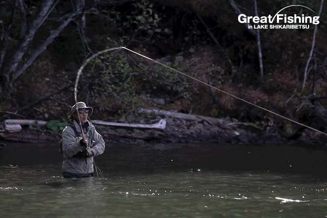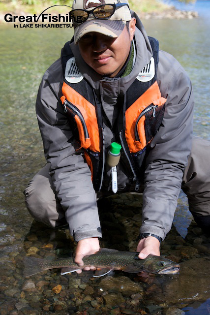 最終日にミヤベイワナ(50cm)が桟橋前でヒット。ヒットフライは、#8ゾンカー(タン)。2005年からの記録では、今年のファーストステージ初日にヒットした(50cm)とタイ記録。5年間のキャッチ&リリースにより、平均的に釣れるミヤベイワナのサイズも(30〜35cm)、また40cmクラスも昨年度よりも増して数多く釣れるようになりました。