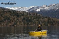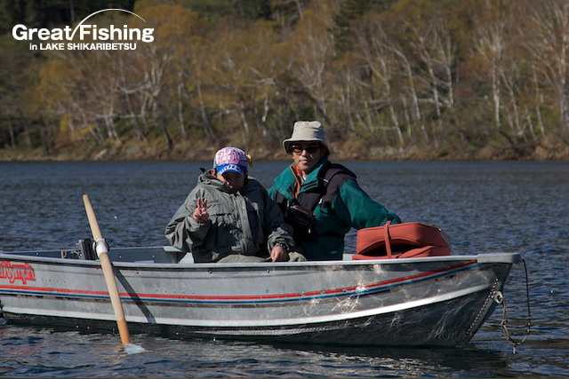 平均的に然別湖のミヤベイワナは曇りの日に良く釣れます。今日も1日中曇り空で、(10〜15匹)ヒットしている釣り人が多いようでした。好調なポイントは、虹色岬とシャクナゲ岬の間と、シャクナゲ岬とイワナ岬の間。ミヤベイワナを釣る場合、岬と岬を結ぶラインは要チェック。大きな群れに当たると連続ヒットすることもあるようです。ヒットする水深(2〜3m)は比較的浅いようですが、群れにより泳層がまったく違うこともあるので、アタリのある水深を探ることが最も重要です。ヒットルアーは、スプーン7〜10g(金/赤、シェル/オレンジなど)、ヒットフライは、(#8ウーリーバガーなど)サクラマス(20〜30cm)は、ミヤベイワナに少し混じる程度で釣果は少なめ。
