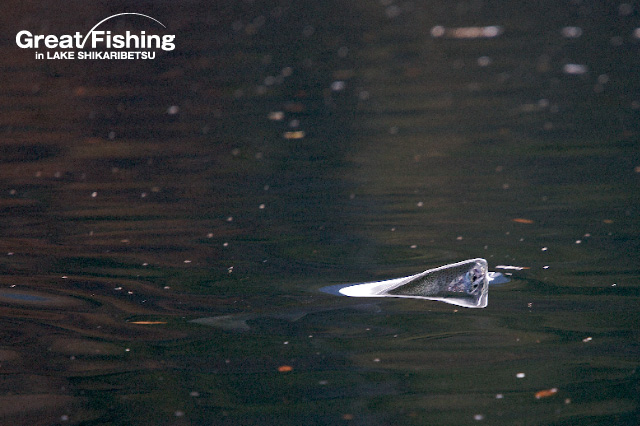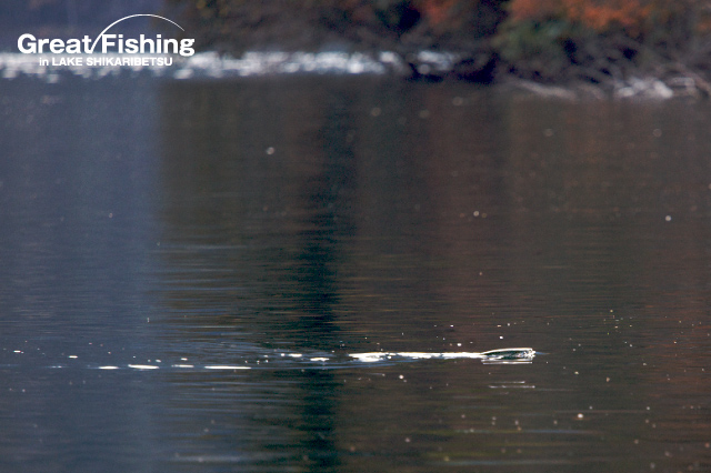 午後から、3の湾奥、思い出岬(ホテル側)、シャクナゲ岬、1の湾(旧北電保養所前〜砂場ワンド)でニジマスのクルージング&ライズがありました。今日も数名のフライフィッシャーが何度もトライしましたが残念ながらヒットは無し。1の湾(ニジマスワンド)では、スピナー7gで(水深3m)を探り、ニジマス(47cm)がヒット(坂田さん/札幌市)。