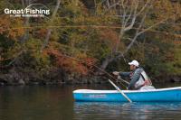 「昨日も完全に無視され続けているので、今日は思い切って#10エルクヘヤーカディスを使ってみたら…」(小糸さん/東京都)。これがアタリで見ごとに大型ニジマスがヒット。しかし、ボート近くに寄せてから、急に深場に潜られて惜しくもラインブレイク・・・