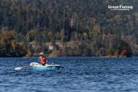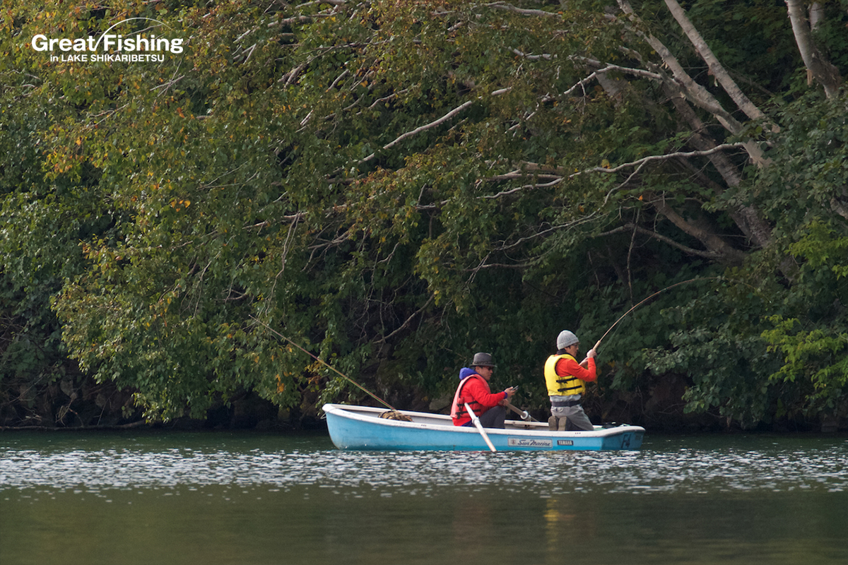 今日はミヤベイワナのヒットレンジが浅く、湖中央などで、ミヤベイワナ(24〜33cm)がスプーン6g(ピンク)で8匹ヒット(梁田さん/札幌市)。境界線周辺㉕周辺では、水深(5〜15m)と幅広いレンジでミヤベイワナ(23〜37cm)7匹ヒット(陣内さん/東京都)ほか。ポイントによって、ミヤベイワナのヒットレンジが非常にバラついているので、水深(5〜15m)まで幅広く探るといいでしょう。