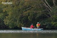 1の湾取水口周辺㉑ ではニジマス(30cm)1匹、大型ニジマス(42〜50cm)3匹が#16テレストリアルでヒット(菊地さん/千葉県)。3の湾⑮周辺、音更湾南側岸周辺⑧では、ドライフライ、ストリーマーで、ニジマス(37cm、40cm、43cm、51cm)がヒット(芳山忠さん/神奈川県)ほか。