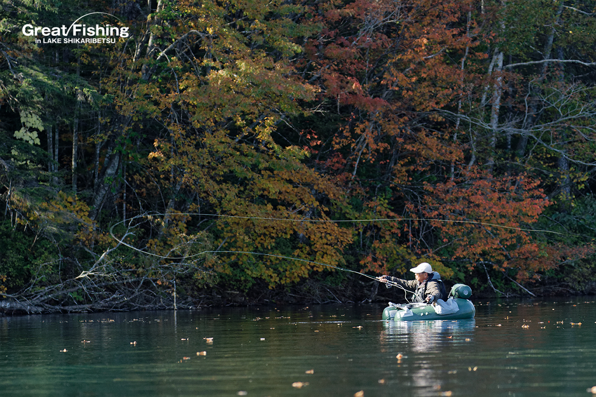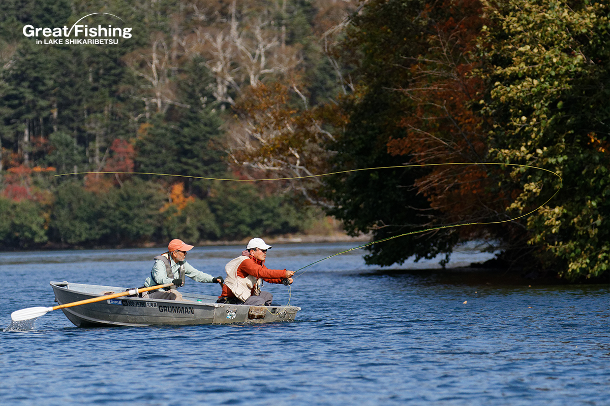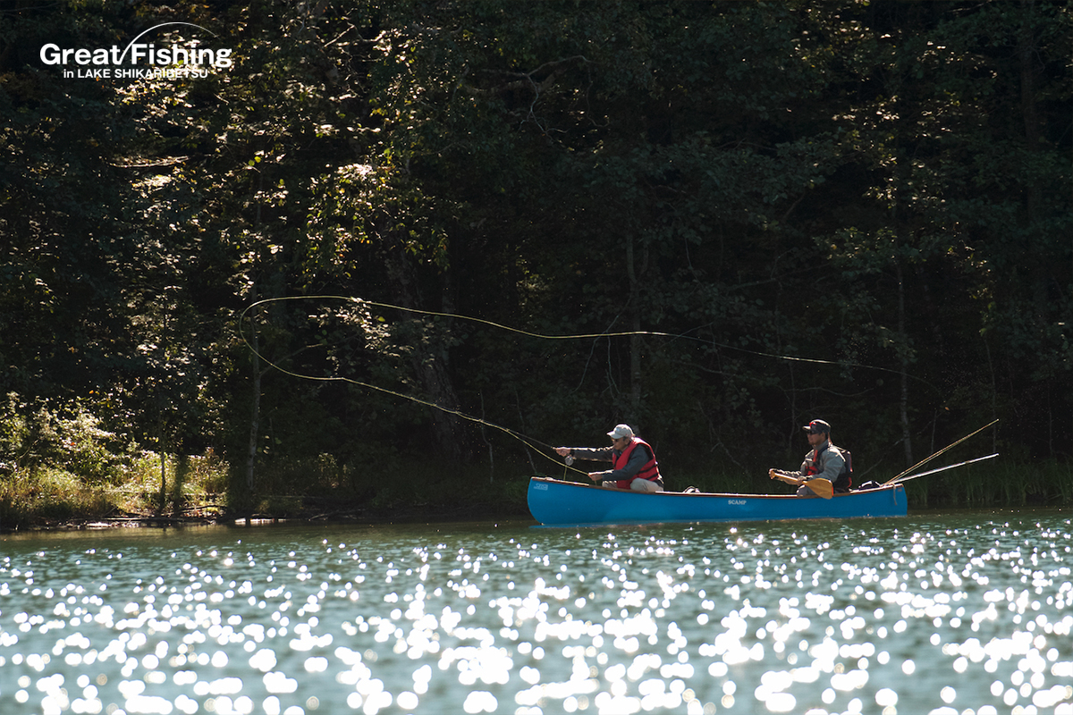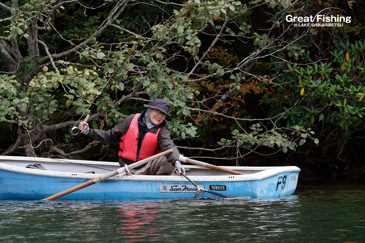 うぐいす湾カルガモ岬周辺⑤、⑥、⑦、音更湾⑧の区間では、ドライフライにニジマスが好反応。#14ライツロイヤルでニジマス(35〜38cm)9匹、(40〜45cm)6匹、ミヤベイワナ(20〜30cm)3匹がヒット(三浦さん/横須賀市)。思い出岬周辺⑰⑱⑲では大型ニジマス(42〜55cm)4匹ヒット(都竹さん/愛知県)。砂場ワンド周辺②、虹色岬周辺③では、大型ニジマス(46〜50cm)4匹ヒット(芳山忠さん/神奈川県)。3の湾奥⑮ではビーズヘッドニンフで大型ニジマス(45cm)、うぐいす湾⑥ではニジマスがライズし(45cm、48cm)が#16ロイヤルコーチマンパラシュートでヒット(児島さん/東京都)ほか。スプーン17gで深場を探りミヤベイワナ(30〜35cm)3匹、大型ニジマス(48cm)がヒット(池戸さん/愛知県)。