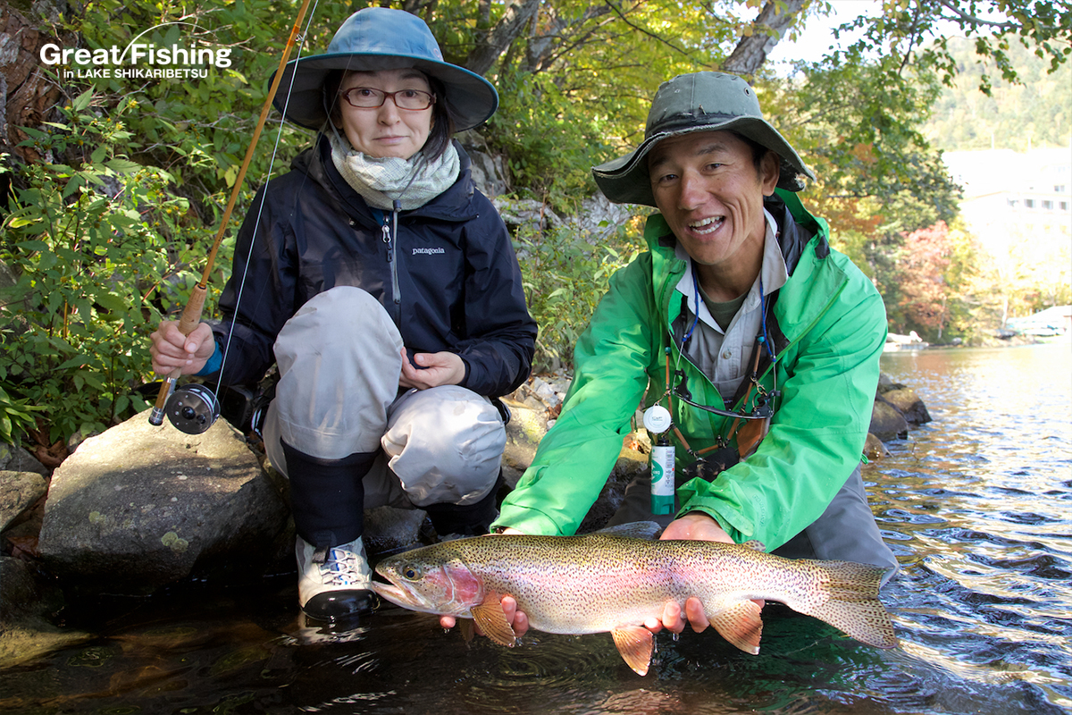 今日のビッグワン ニジマス56cm(篠原さん/東京都)然別湖ガイドマップ