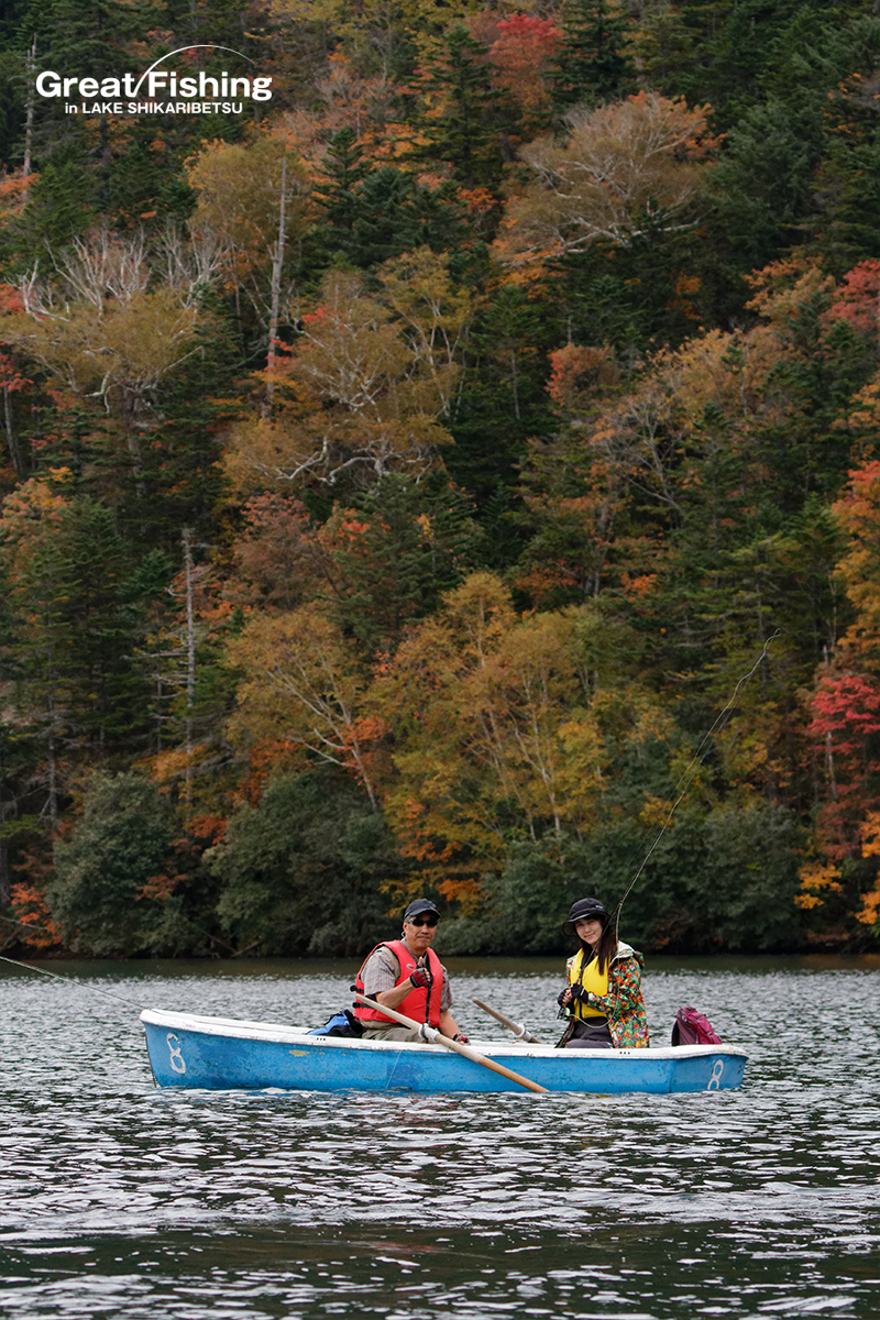 連日、湖中央、境界線付近では、強風(6m〜8m)のため、ミヤベイワナのヒットレンジ(5〜15m)へ、ルアーを沈めることが難しく釣果は低迷。アイサ岬⑭の沖では、良型ミヤベイワナ(35cm)が2匹ヒット(佐藤さん/帯広市)。湖中央周辺㉓ではミヤベイワナ(27〜31cm)2匹ヒット(岡谷さん/愛知県)ほか。