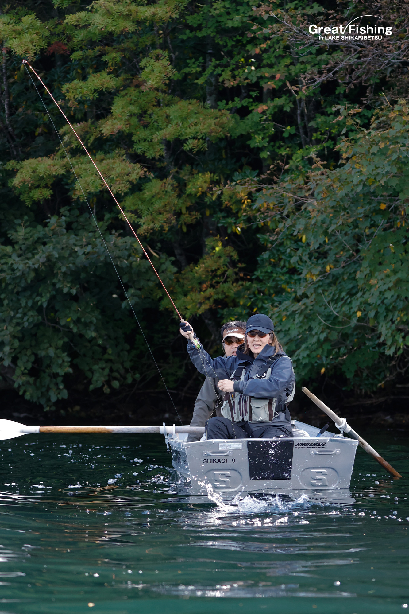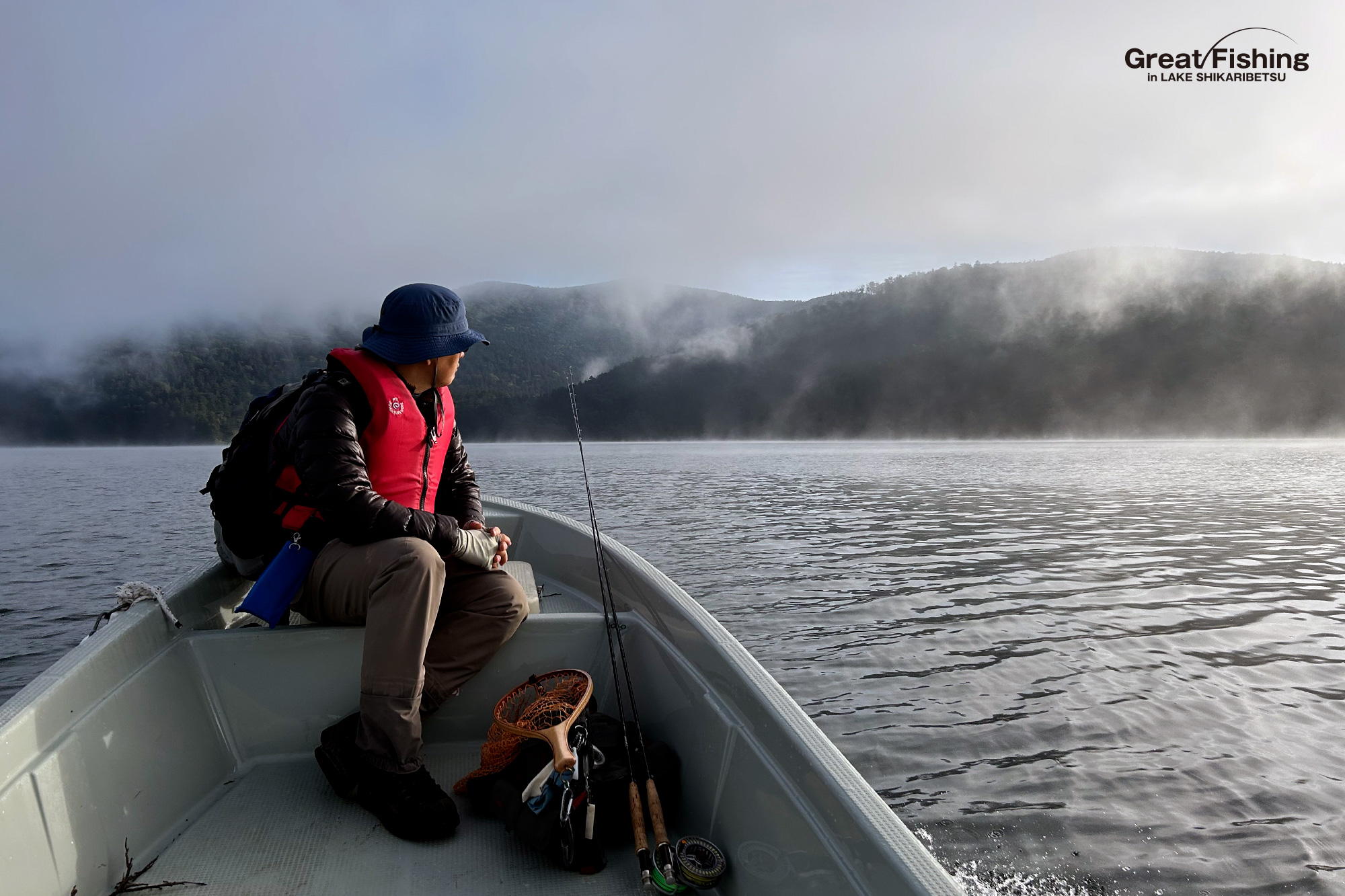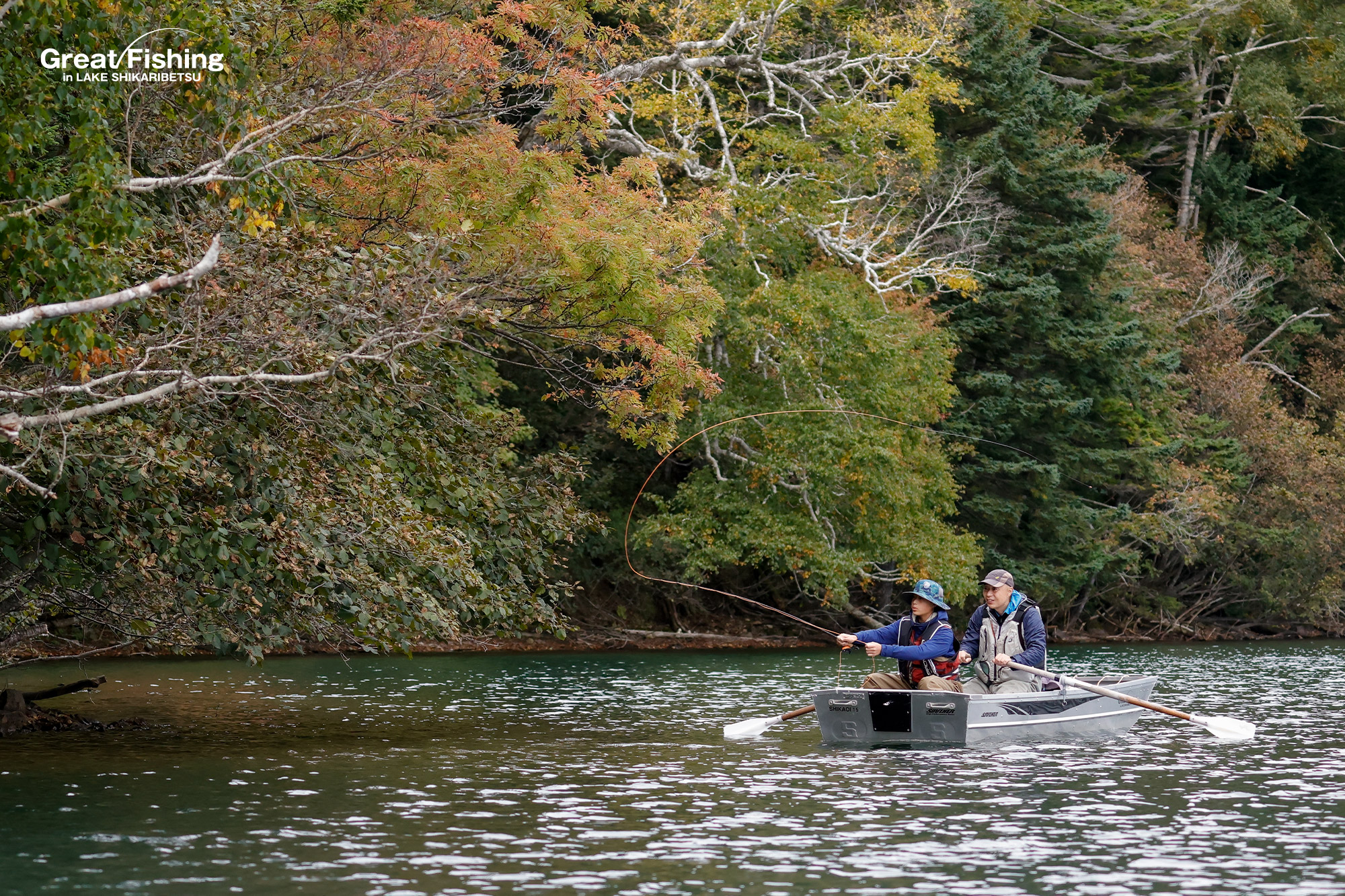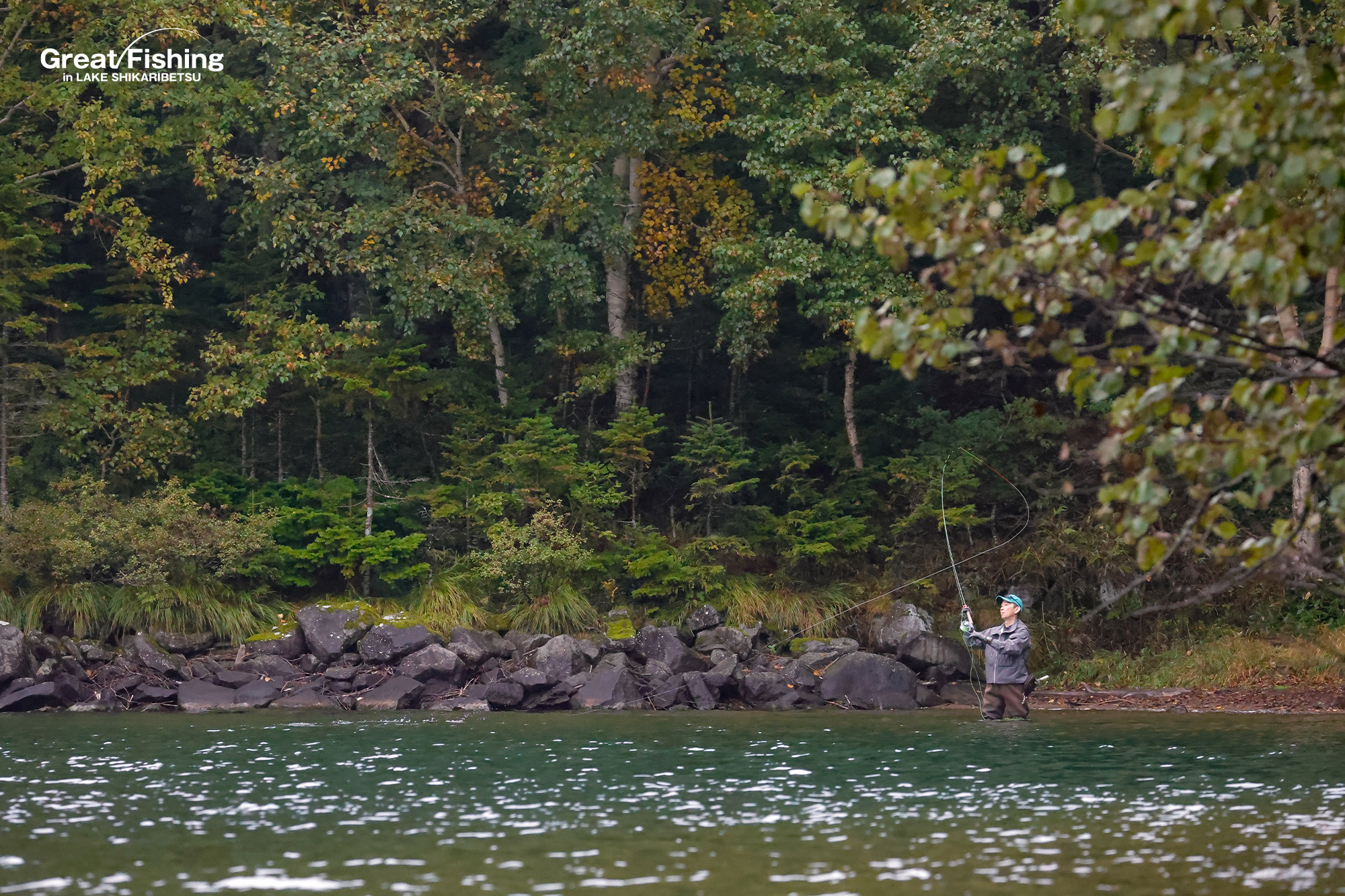 湖中央㉓周辺ではスプーン(11g)をカウントダウン40秒フォールさせてミヤベイワナ(30cm)がヒット(今城さん/恵庭市)。2の湾沖周辺㉒ではスプーン(12g)をカウントダウン40秒フォールさせてミヤベイワナ(30cm)がヒット(石澤さん/石狩市)。虹色岬③から湖中央周辺㉓の間では(シンキングラインタイプ4+マラブー/ピンク)でミヤベイワナ(30cm)がヒット(斉藤さん/大阪府)他。水温が少し下がり、早朝ミヤベイワナのヒットレンジは水深(5〜8m)とやや浅くなったようです。