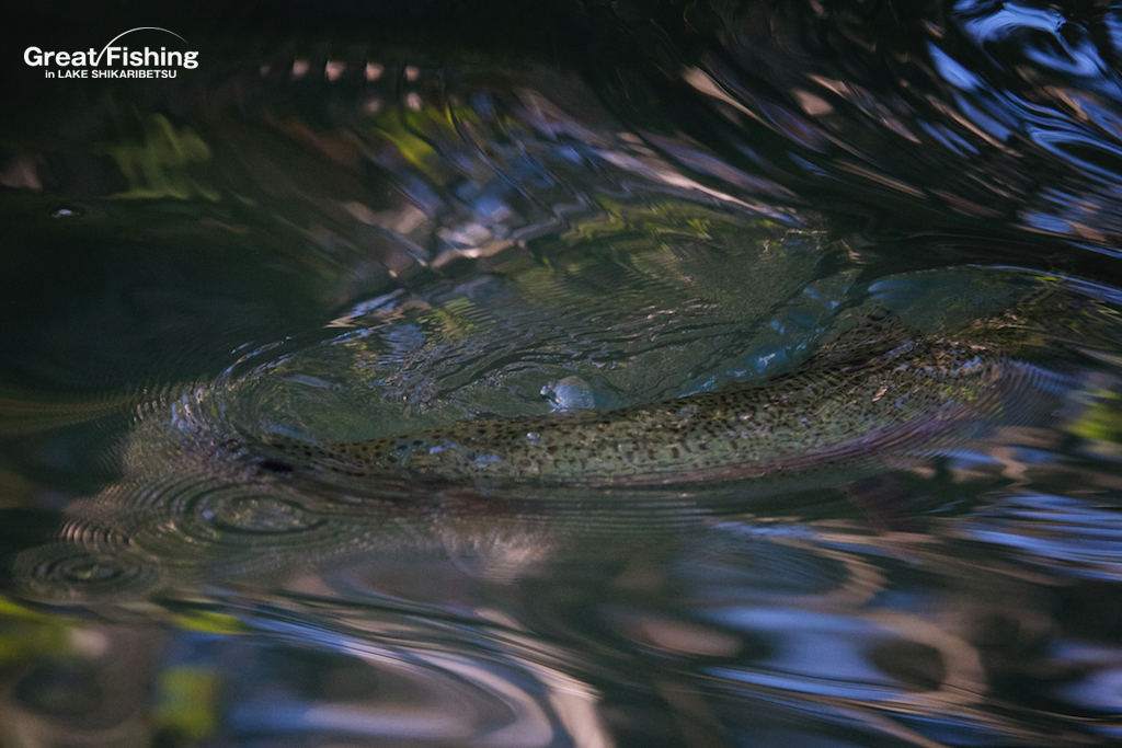 今日のビッグワン ニジマス50cm(由井さん/東京都)然別湖ガイドマップ