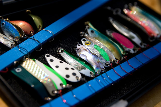 スプーン(ピンク系)6.5〜8g。岸からはスプーン(シェル)5gが効果的。
