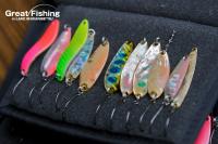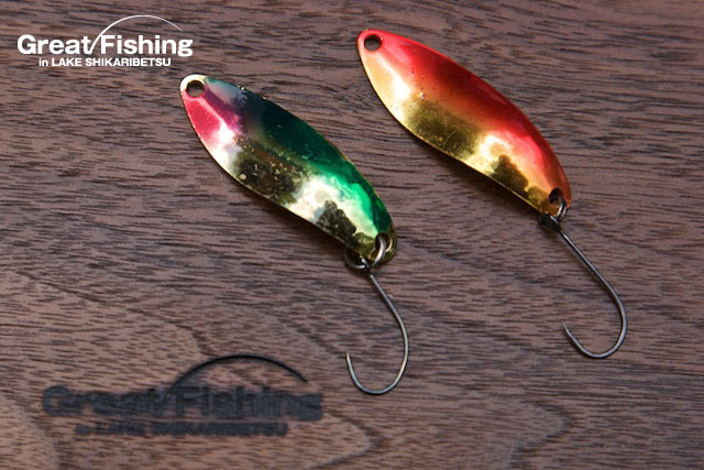ロッドは6.0フィート〜7.0フィート・アクション(ライト〜ミディアム)。ルアーはスプーン6g〜15g程度。カラーは(赤・金)(緑・金)(ピンク系)(シェル)などをローテーション。
