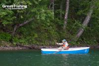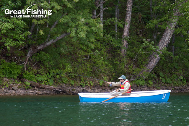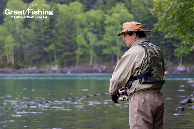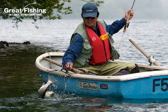 3の湾でミヤベイワナ(25〜40cm)、サクラマス(30〜40cm)が好調。タナは水深2〜4mと浅く、スプーン6.5〜10g(赤金)、(ピンク)などでヒット。音更湾では、ミヤベイワナ(25〜35cm)、サクラマス(30〜42cm)が良く釣れています。大型のサクラマスやニジマスを狙うには、岬の先端部で回遊して来るのをじっくり待つと良いようです。また各湾ではヒットするタナが、0〜10mとかなり違っています。ルアー、フライを引っ張るタナが合っていないと、まったくアタリがありません。そのため1日に1匹しか釣れない人や50匹以上釣れる人など、釣り方によって釣果の差がはっきり出てきています。魚影は非常に濃い然別湖ですが、タナを探ることや、リトリーブのスピード、ルアー(フライ)ローテーションなどその場の状況に対応することが必要です。「アタリは多いがヒットしない・・・」そのような時は釣り方に変化をつけてみてください。