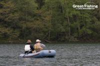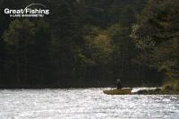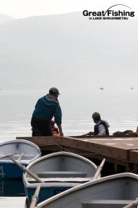 釣果は(1人/平均約15匹)。今日最高の釣果は、40匹(大沼さん/芽室町)、(中村さん/帯広市)。より多くの釣果を望むなら、ボートは岸に寄せて掛け上がり15m以内を丹念に探ると良いようです。また浅い水深(2〜3m)でアタリが無い場合は、ボトムまで一旦ルアーを沈ませてから、底をトレースするようにリトリーブすると効果的。