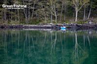 解禁から続いた絶好調は少し落ち着いて来た様子です。それでも、1人平均8匹とまずまずの釣果。今日最高の釣果は30匹(八木さん/静岡県)。連日好調の原因のひとつに「水温」があげられます。解禁初日の表面水深は(8.5℃)、今日の表面水温は(9.5℃)と低い水温が続いています。水温の上昇と共に、少しづつ泳層を深くしてゆくミヤベイワナは、現在のところ岸から(5〜10m)以内の掛け上がりに集中しているようです。特に早朝はヒットレンジが非常に浅く、水深(2〜3m)で良く釣れています。