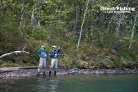 早朝から曇り、風も微風と釣りには良い条件でしたが、昨日と同様にミヤベイワナの食いが渋く苦戦を強いられていたようです。終日ルアー、フライへのチェイスは多いが、なかなかヒットしな状況。ポイントによっては良く釣れていたようですが、全体的には低釣果。平均5〜6匹。今日最高の釣果は、18匹(佐々木さん/神奈川県)。