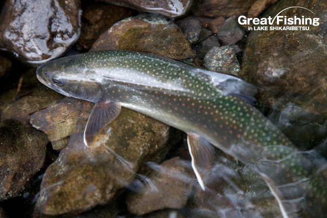 解禁6日目でミヤベイワナは少しスレ気味。チェイスは多いが、なかなかヒットしないこともあるようです。フライ、ルアーのローテーションや場所を一旦休ませるなど工夫が必要。今日最高の釣果は13匹(山崎さん/札幌市)。