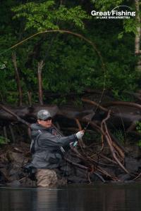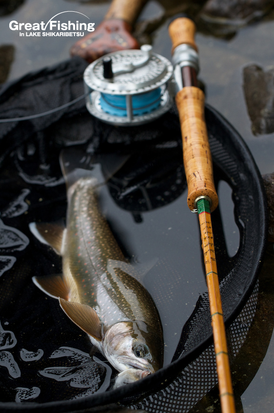 午後から1の湾で、ドライフライ(#10チェルノブイリアント)でニジマス(35〜45cm)がヒット(清水さん/神奈川県)。(#12エルクヘヤーカディス)では良型サクラマスが釣れています(下畝さん/神奈川県)。ドライフライへの反応が日に日に良くなってきています。