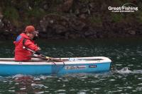 水深(1〜3m)にはミヤベイワナ(25〜40cm)の小さな群れや大きな群れが多く点在しているようです。湯の花岬【14】〜湖中央【19】では魚の活性が非常に高く、シンキングラインタイプ2を使ったハーリングまたはフライキャスティングでミヤベイワナが連続ヒット。フライは(#10マラブー/茶色)。