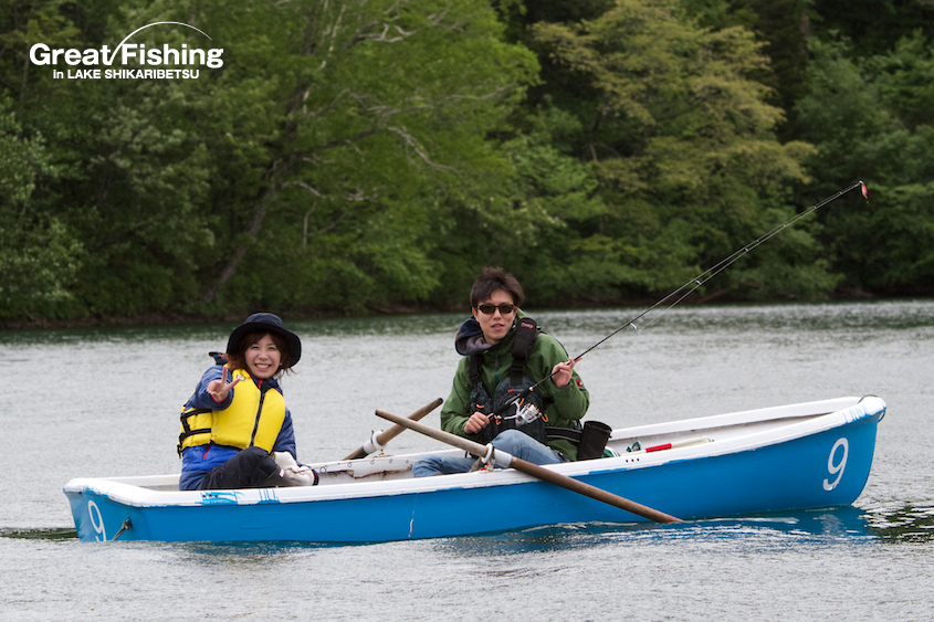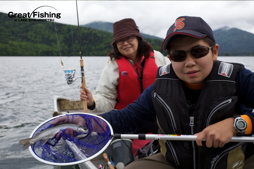 今日のビッグワン ニジマス40cm(三浦さん/札幌市)、サクラマス40cm(武田さん/札幌市)然別湖ガイドマップ