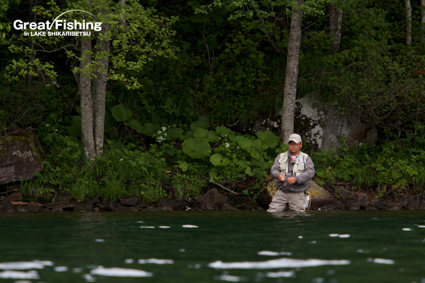 連日の冷たい雨、早朝の気温は12℃・・・早朝から音更湾岸釣りエリアでミヤベイワナ(20〜30cm)が好調。ヒットレンジはボトム周辺の深場が多いようです。ヒットルアーは(バックス12.3g/ゴールドまたは赤金)で釣果はミヤベイワナ32匹(皆川さん/千葉県)。湖中央のポイント【18】【19】【20】、虹色岬沖合【3】では、ルアー、フライともに水深(2〜5m)でミヤベイワナ、サクラマスが釣れています。イワナ岬【11】では、大型ミヤベイワナ(40〜45cm)がヒット(吉田さん/札幌市)。全体的に今年のミヤベイワナのアベレージは例年に比べ大きいようです。今日の最高釣果は32匹(皆川さん/千葉県)(嘉村さん/熊本県)