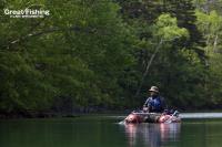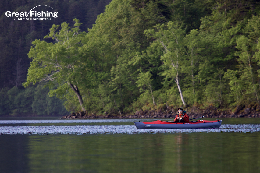 ミヤベイワナのレンジは2〜3mと浅いようですが、かけ上がりからは徐々に離れてきているようです。今日はニジマス(30〜45cm)のヒットが多く、1日の釣果では今季最高の35匹。ヒットルアーはフローティングミノー6cm、ヒットフライはストリーマー(#6ウーリーバガー/オリーブ)など。シンキングライン(タイプⅢ)でニジマス(40〜45cm)が4匹ヒット(風間さん/札幌市)、ドライフライ(#12エクルヘヤーカディス)ではニジマス(37〜41cm)が3匹、サクラマス(30〜34cm)2匹、ミヤベイワナ(20〜30cm)がヒットしています(小倉さん/川崎市)。今日の最高釣果は78匹(立浪さん/帯広市)。