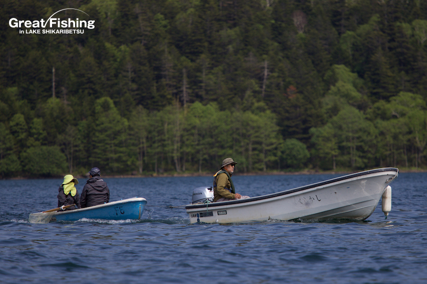 早朝から8m〜10mの強風が吹き荒れて湖中央、音更湾、うぐいす湾は遊漁規制のため進入禁止。昨日に引き続きミヤベイワナの活性は非常に高く釣果は安定しています。今日の最高釣果は51匹(山本さん/埼玉県)。