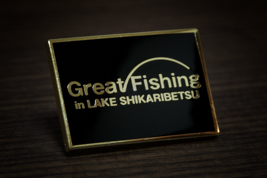 オリジナルロゴのピンバッジができました。グレートフィッシング然別湖の催期間中のみ受付事務所で販売しています。(ブラック&ゴールド限定数 : 300個)