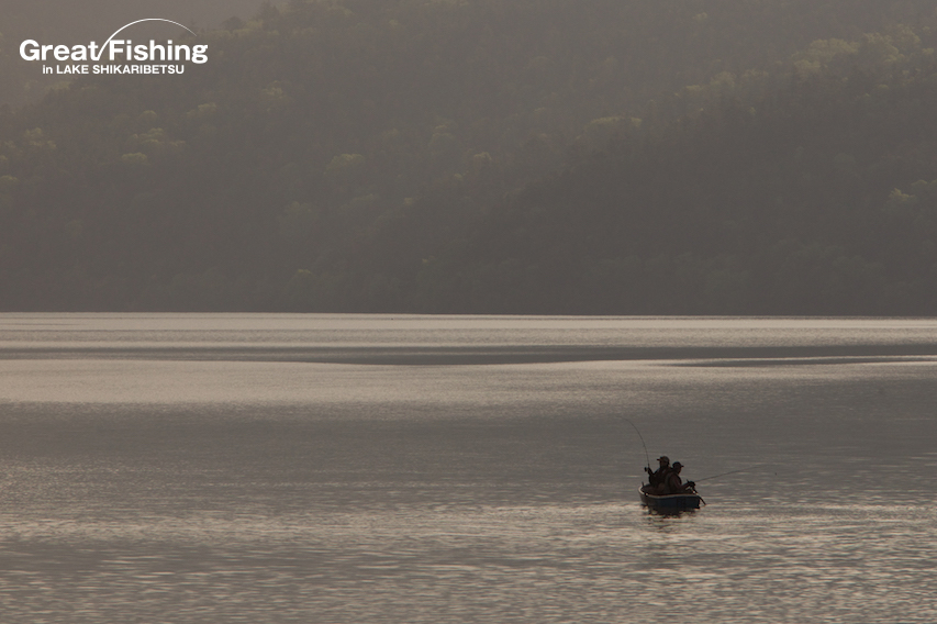 昨日同様、ミヤベイワナ(25〜40cm)のヒットレンジは浅く釣果は安定しています。早朝、イワナ岬ではジグミノー6g(ピンク系)にミヤベイワナが30匹ヒット(小島さん/東京都)、シャクナゲ岬周辺では表層から水深1mでミヤベイワナが43匹ヒット(高橋さん/苫小牧市)。渡船で音更湾岸釣りエリアに渡った2名も30匹以上釣れています。今日の最高釣果は47匹(内藤さん/芦別市)、(高橋さん/苫小牧市)。