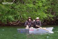例年に比べて魚のコンディションがよく、アベレージサイズも大きいようで、良型ミヤベイワナ(35m)、良型サクラマス(35cm)、大型ニジマス(40〜50cm)がよく釣れています。全体的な釣果は1人15匹〜30匹前後。