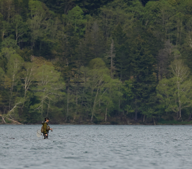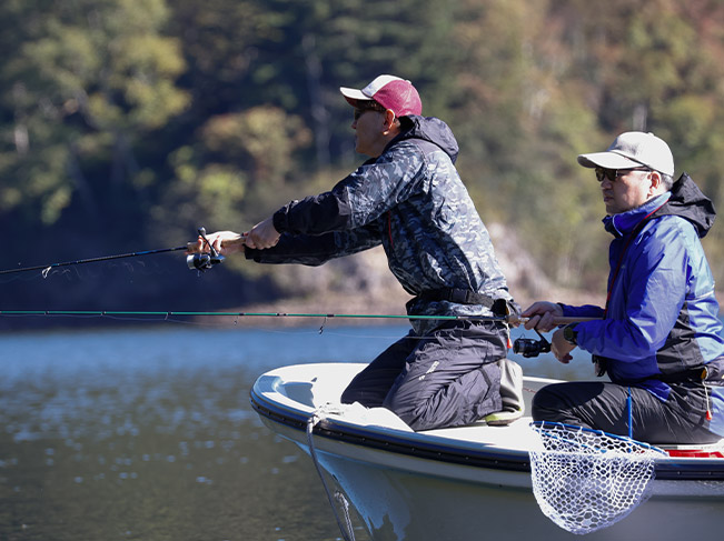 続いてプライベートエリアに上陸し、地形や風の当たり方、ボトムマテリアルの変化などをじっくりと観察。手元に伝わる湖流を感じ取りながら、岸から繊細なアプローチを実践してみましょう。 メインターゲットは、湖に棲息するすべてのトラウト。岸際に群れをなすウグイを上手にいなしつつ、手を変え品を変え工夫を凝らして珠玉の一尾に迫ります。